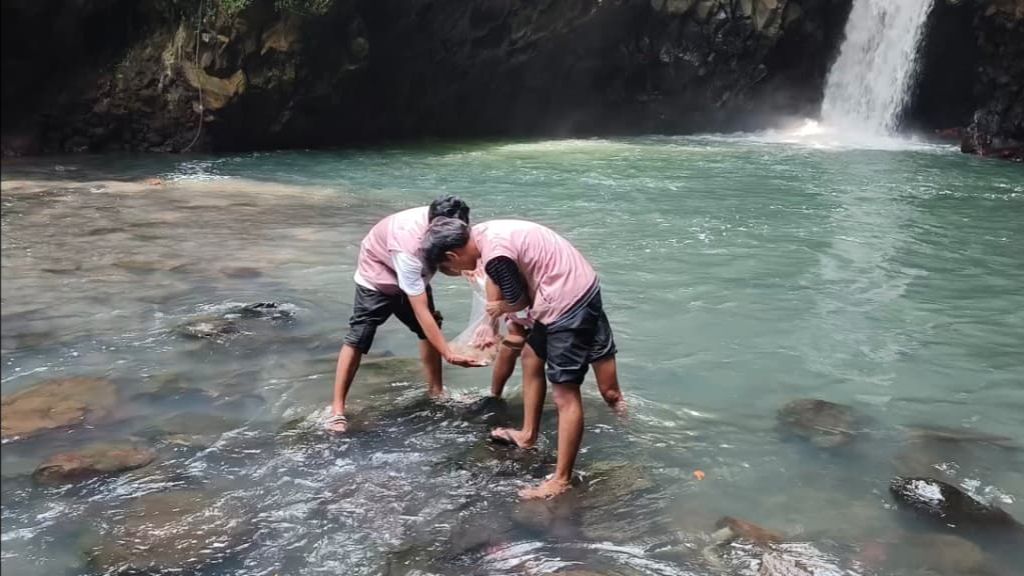 Mahasiswa KKN IMK Melepas Benih Ikan di Sungai/Air Terjun Tembok Barak, Sambangan