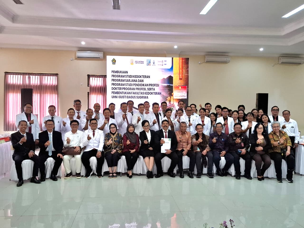 Hadir dalam kegiatan tersebut, Kepala Dinas Kesehatan Provinsi Bali diwakili oleh Kepala Bidang Sumber Daya Kesehatan, Dr. Camelia; Kepala Dinas Kesehatan Kabupaten Bangli dr. Nyoman Arsana, M.Kes; Direktur RSUD Bangli, dr. I Dewa Gede Oka Darsana, Sp.An., FIPM; Direktur RSJ Manah Shanti Mahottama Provinsi Bali, dr. Ni Wayan Murdani, M.A.P; Kepala LLDIKTI diwakili PIC Tim Kelembagaan LLDIKTI Wilayah VIII, I Wayan Sudarma S.Sos,.M.Ap; Wakil Dekan Fakultas Kedokteran UNUD, Prof.dr. I Made Ady Wirawan,S.Ked.,MPH.,PhD; Pendamping Pendirian Prodi Kedokteran dari UNUD, dr. I Made Winarsa Ruma, Ph.D; Kepala Kantor Kemenag Kabupaten Bangli diwakili Kasi Pendah, I Komang Mahardika, S.H, M.Pd.H; jajaran pejabat struktural dan nonstruktural di UHN Sugriwa, serta puluhan calon dosen Prodi Kedokteran (ram).